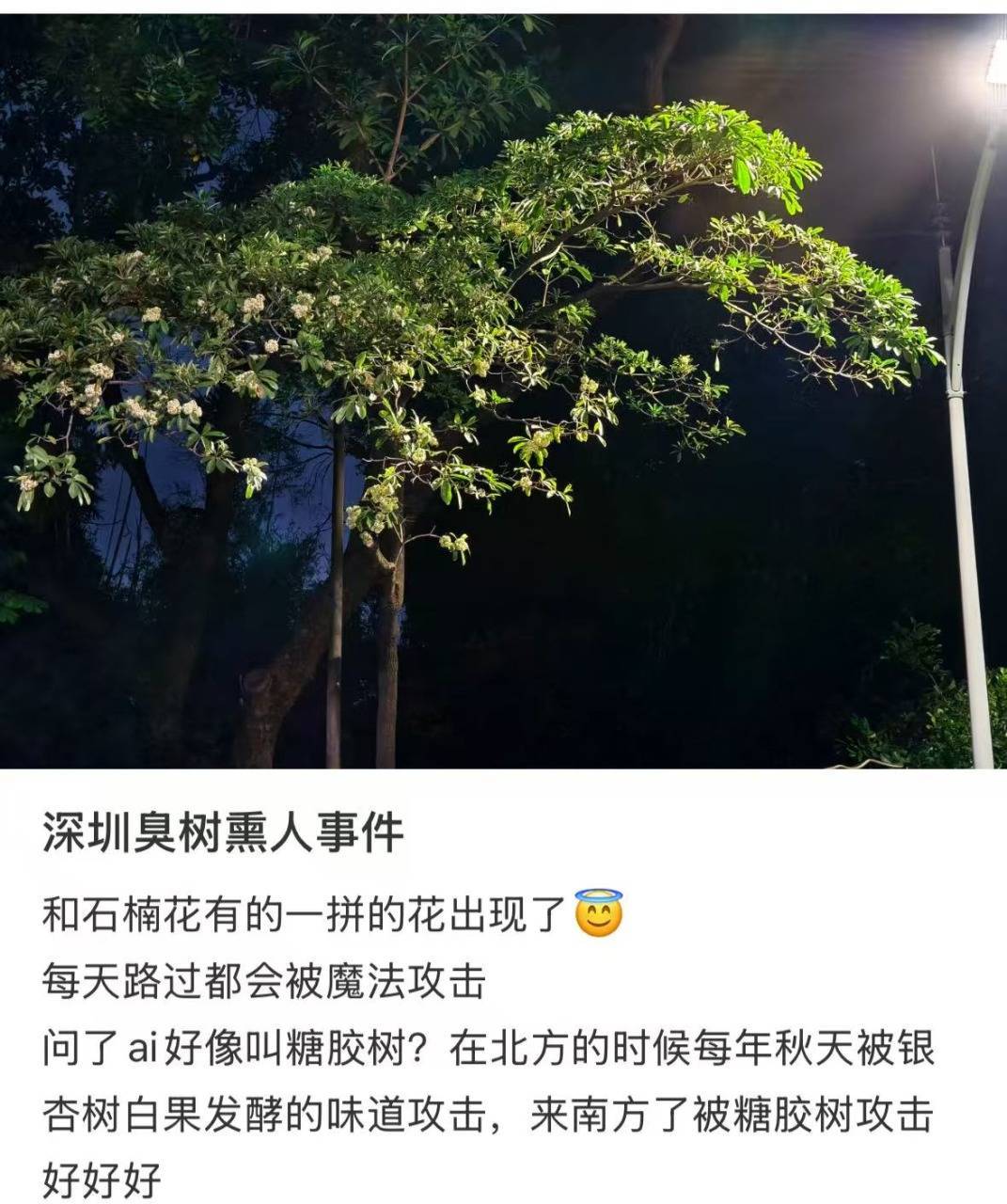 到底是什么味道?没错!深圳这款“季节限定”气味来自——糖胶树。